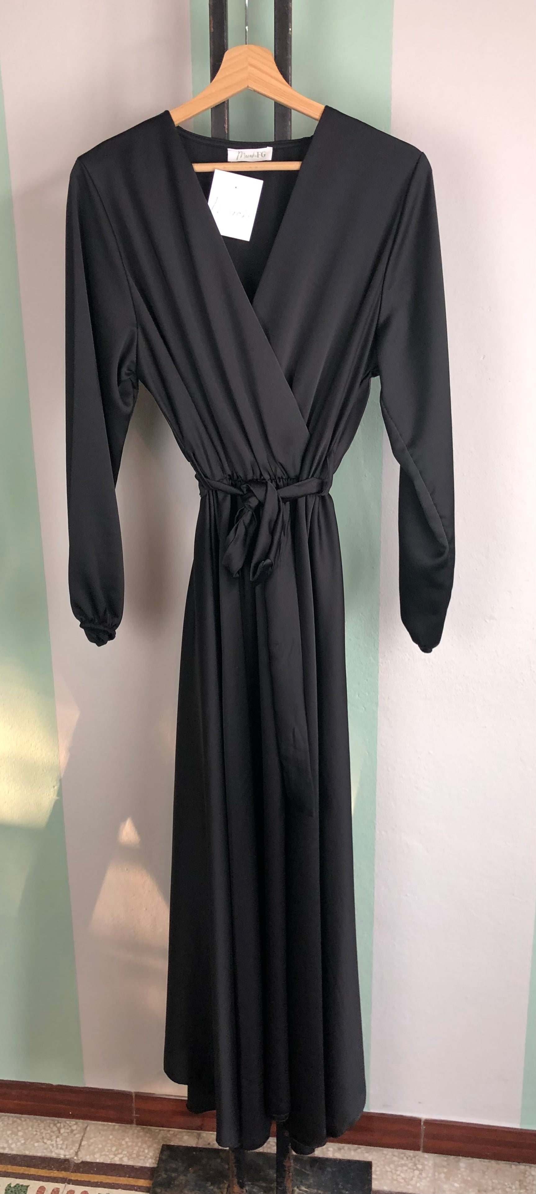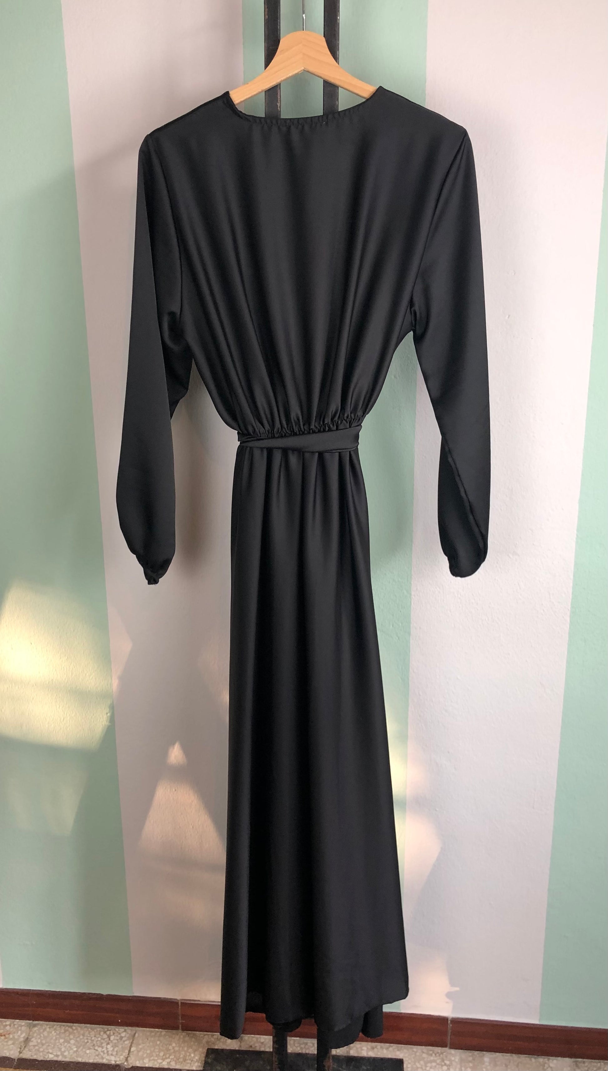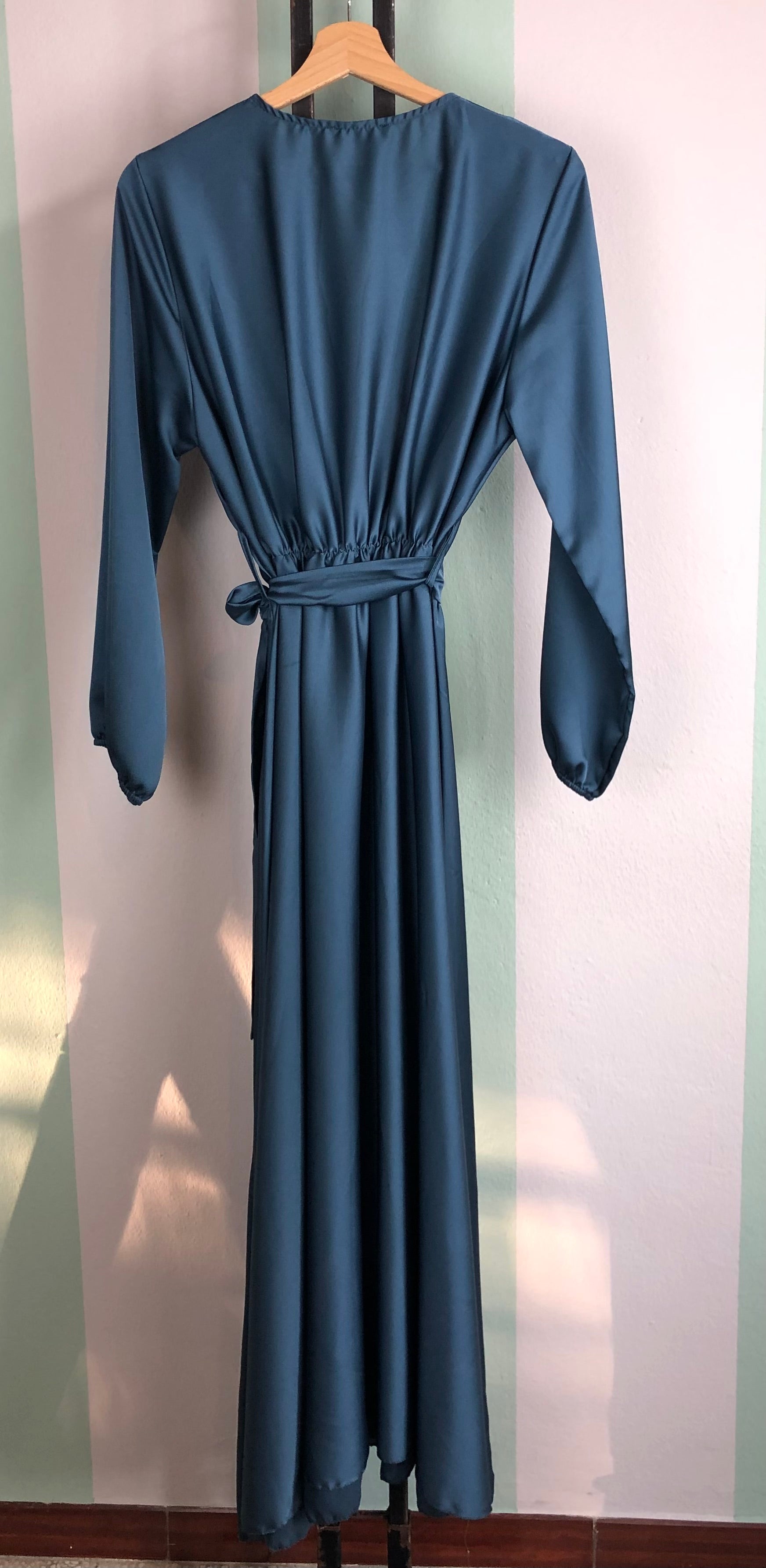 Abito lungo in satin con cintura in vita
